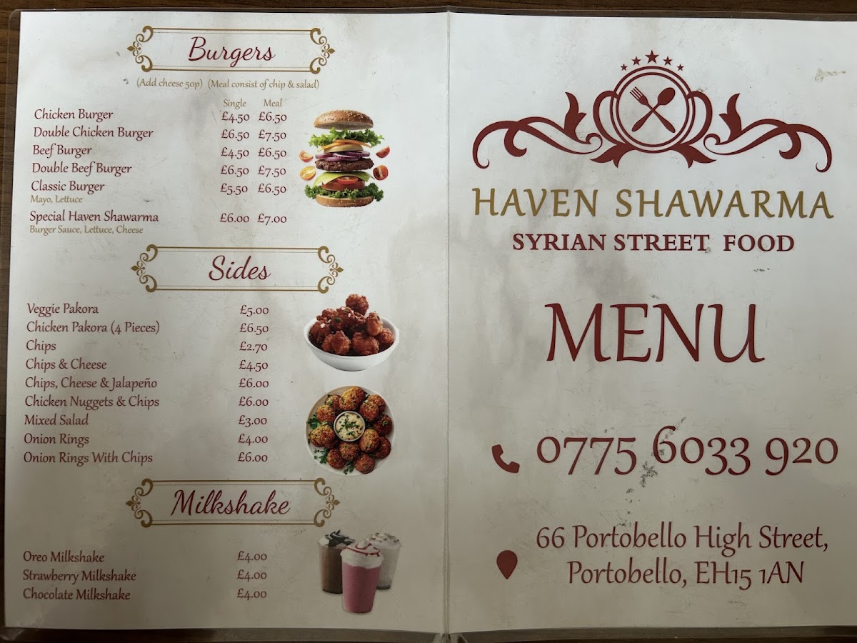 Welcome to Haven Shawarma, a culinary oasis nestled in the heart of Edinburgh at 66 Portobello High St. This charming eatery specializes in authentic Syrian and Middle Eastern cuisine, offering a vibrant menu that tantalizes the taste buds.